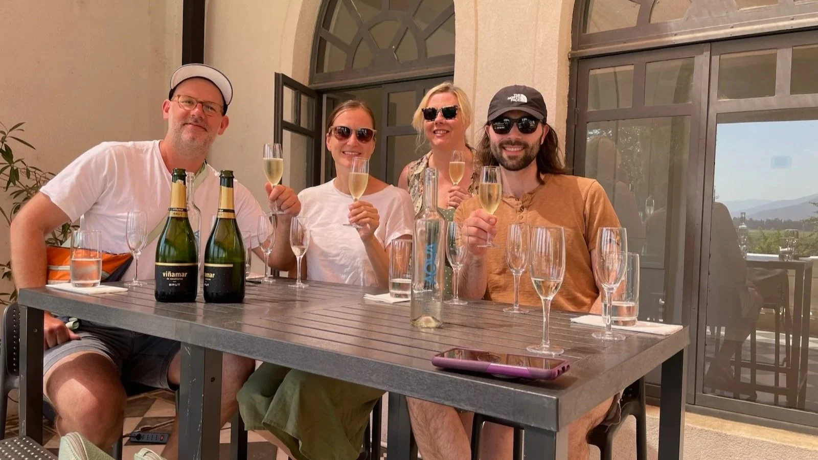 Next was Vinamar which was a sparkling wine house. They were in the middle of a replanting cycle which was cool to see, they had torn up a bunch of Sauv Blanc and something else because they don’t want their vines to get too old because they need to maintain their yields. They only do one traditional method, everything else is charmant. They were pretty tasty, but didn’t buy anything here because we can’t trust bubbs in the airplane cargo hold. This is where I bonded with the Vancouver gays, sadly I don’t think any names were exchanged but we were excited to hang out at the next winery together which was called Bodegas RE which was doing some real experimental shit like mixing red and white varietals together that I don’t necessarily think would work together? Some of it did, some of it didn’t, but I did buy another orange wine here which was a mix of Gewürztraminer and Reisling and was discounted because it was missing a label. This is the winery that I bonded with the Ft. Lauderdale gays. They had a shih tzu named Brutus and he talked about he won’t do republicans hair because he was a hairdresser, and I got a little weepy about my recently passed friend and hairdresser of 20 years, Nicole, and he was very sweet about it.